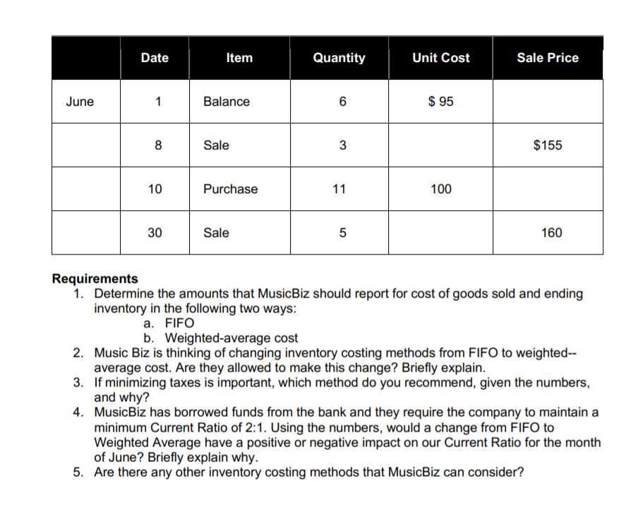 Solved Date Item Quantity Unit Cost Sale Price June 1